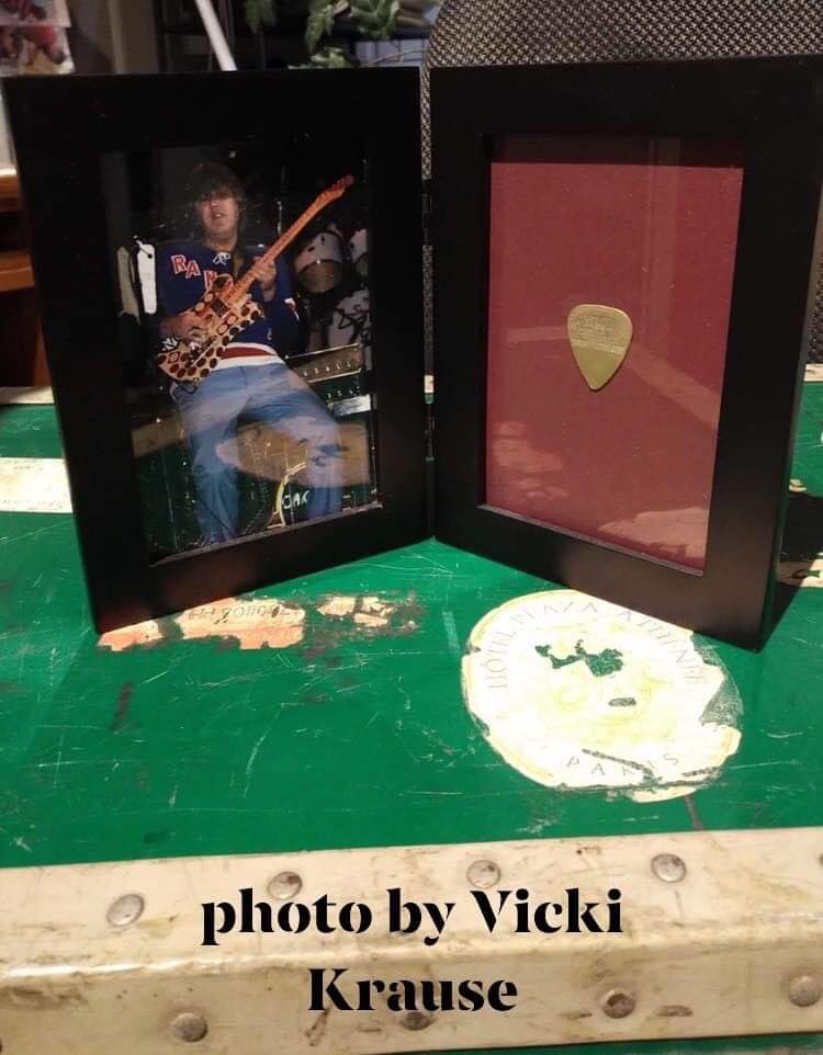 The stickers from Hank Steiger and Jack Goudie are still on it along with Chicago XI World Tour 1977. Inside there is a compartment that has a picture of the guitar. Jim was very kind, considerate and gracious. A lot like Terry.”